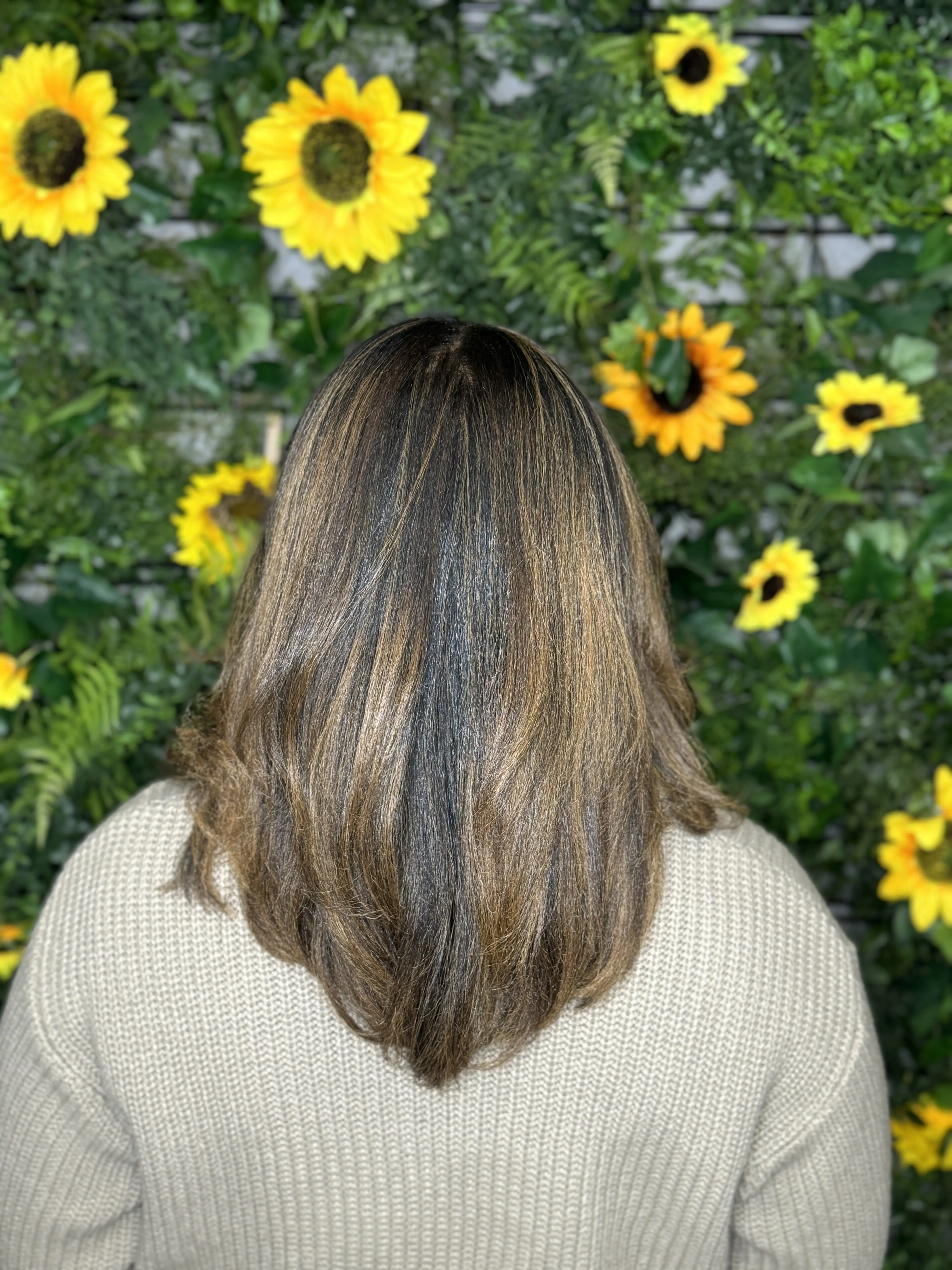 Balayage creates soft, hand-painted brightness for a natural, sunkissed effect that grows out gracefully. We customize placement and tone to flatter your features and daily routine, delivering luxe dimension and effortless movement. The result is a modern, low-maintenance glow with high-style impact.