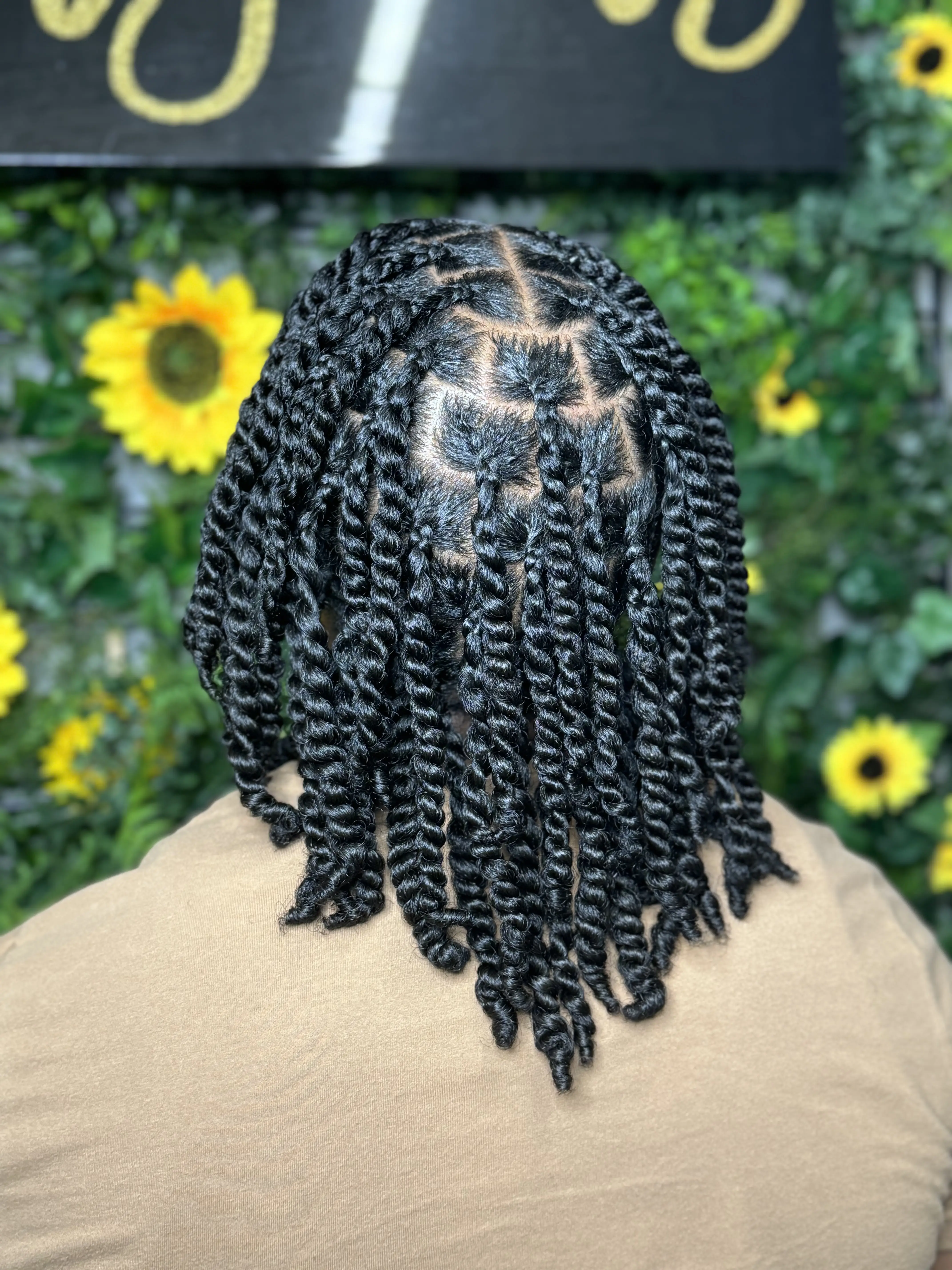 Two-strand twists for client with the sides of their hair shaved a versatile, protective styling option that enhances natural texture while reducing daily manipulation and breakage. This technique delivers long-lasting and low-maintenance styling for several weeks when combined with proper moisture retention and gentle upkeep.